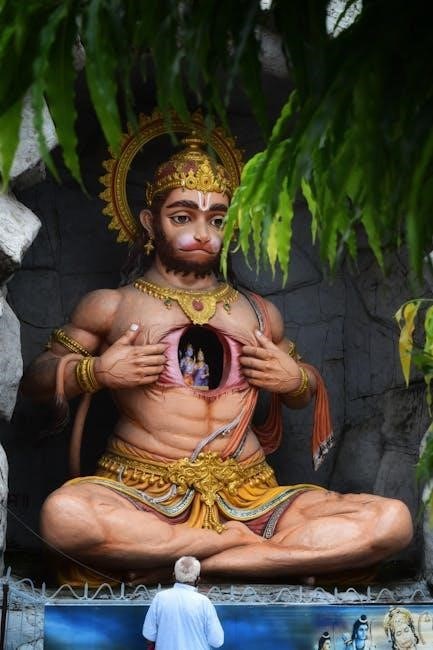 The verses highlight Hanuman’s humility despite his immense power, showcasing the ideal devotee who remains egoless․ PDFs in Marathi allow wider access to these messages․ The Chalisa also conveys the importance of discipline, righteousness (dharma), and unwavering faith in overcoming obstacles․