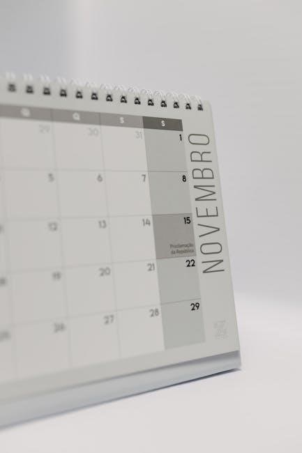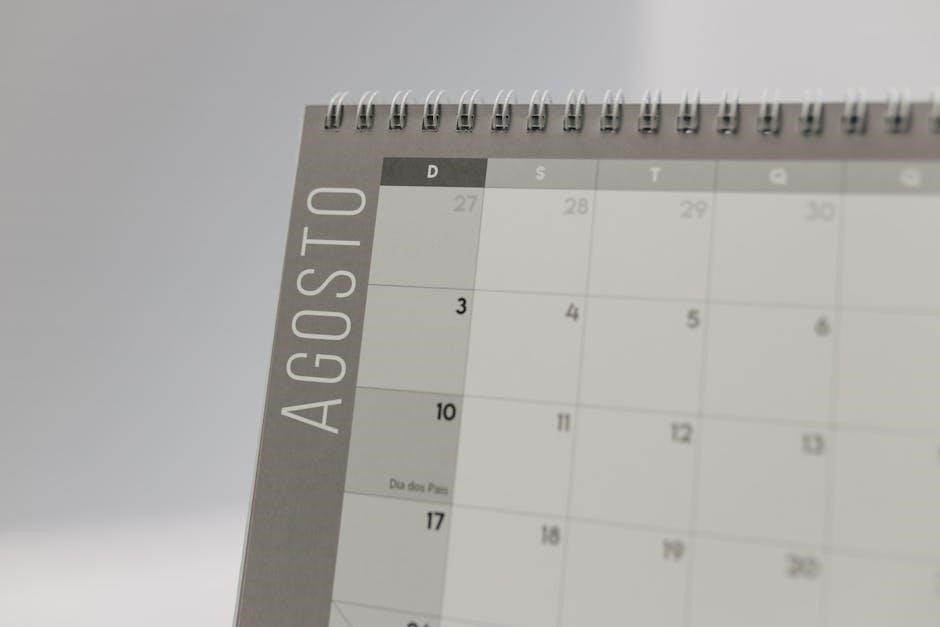 Each day’s workout is clearly marked on the calendar, allowing for easy planning and tracking. The PDF also indicates which workouts belong to each block, ensuring adherence to the program’s progressive structure.